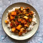 Kook de rijst volgens de instructies op de verpakking. Verhit de olie in een pan en bak de kipfilet. Voeg de ui en knoflook toe en bak even mee. Voeg de paksoi en doperwten toe. Voeg de tomaten, ananas en kruiden toe. Laat 5 minuten pruttelen en serveer met de rijst.