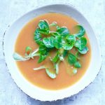 Doe de tomaten, ui, wortel, garam masala, kaneel en bouillon in een pan en voeg water toe zodat de groenten net niet onderstaan. Breng aan de kook en kook 20 minuten met deksel op de pan. Pureer de soep. Serveer met scheutje kookroom en veldsla.